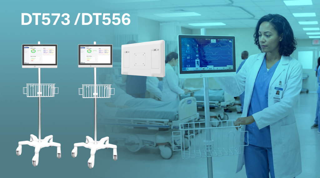 Standard medical carts are often bulky, and wall mounts can be restrictive. To provide greater flexibility across stick carts, wall mounts, and kiosks, DT Research introduced the all-new DT573 and DT556 Medical Computers.