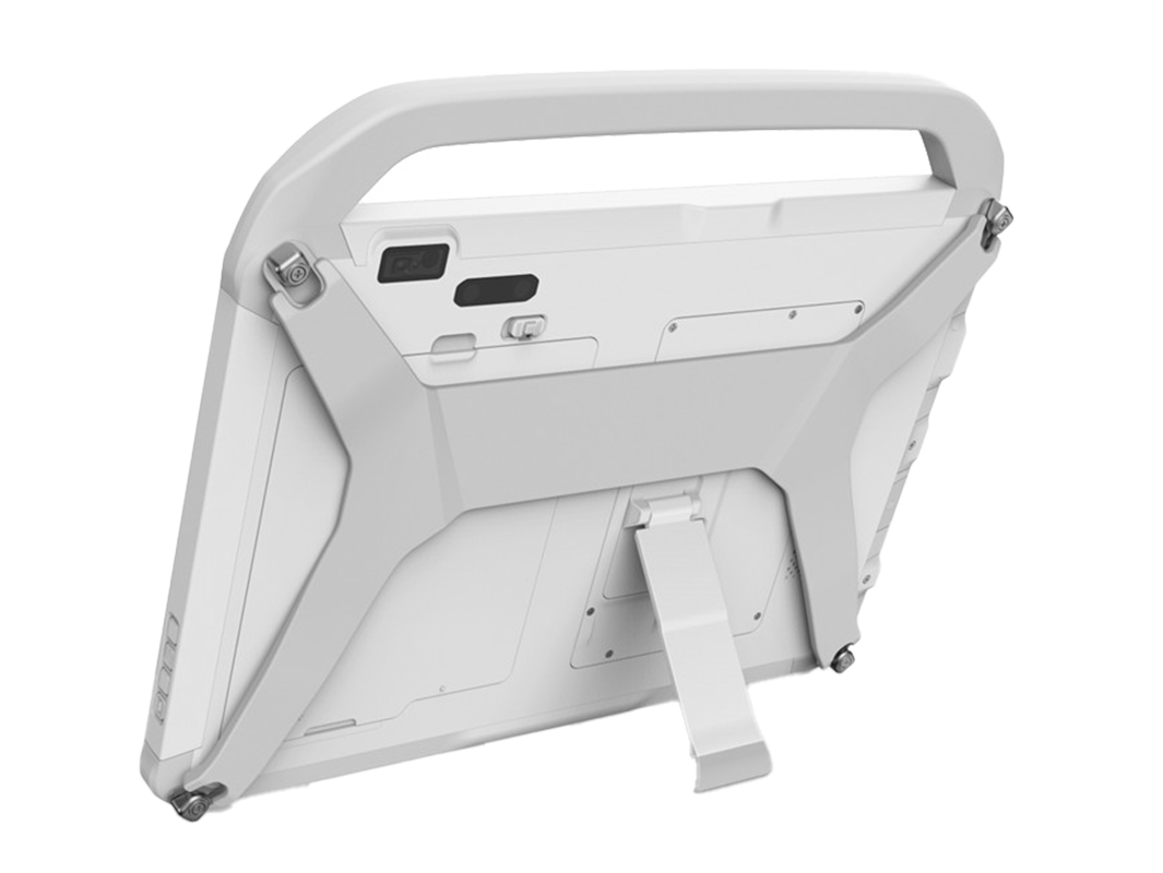 Designed to securely hold the tablet, enable easy carrying, and provide optimal sound projection. Factory installed only.